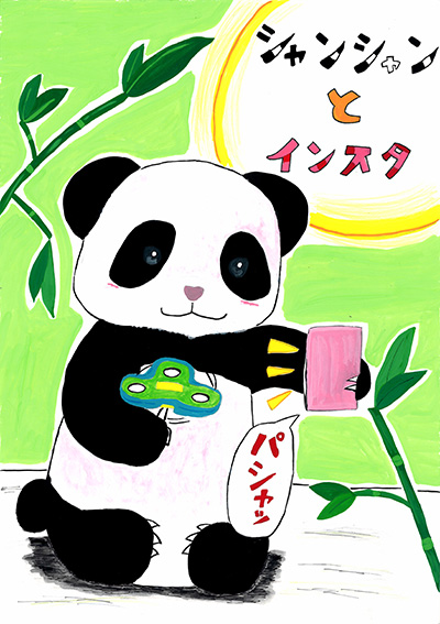 また、はっきりとした色合いが作品の中でも特に目を引き、審査員からの高い評価を得ました。背景の笹も、シャンシャンの魅力をより引き立てています。